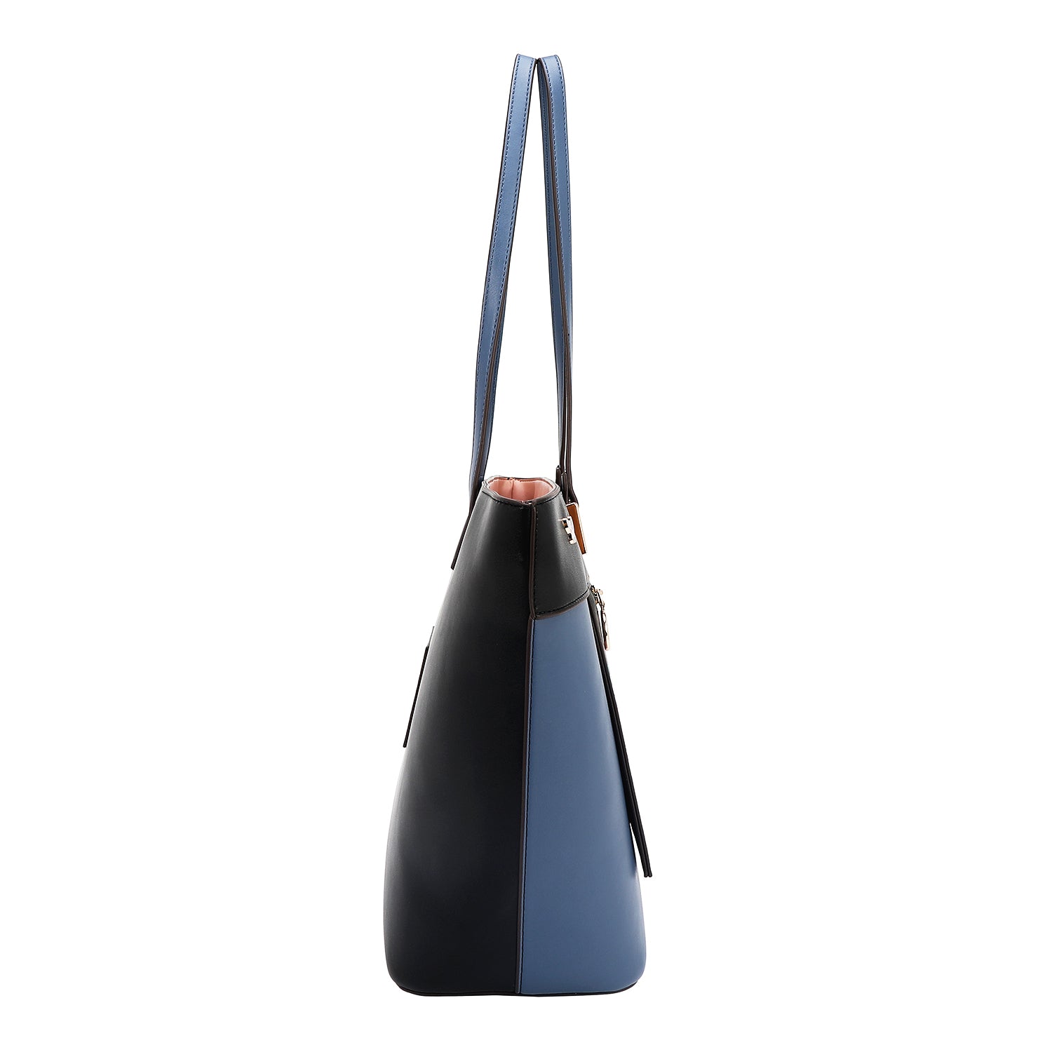 One interior zip wall pocket at back with an eco-leather key chain clasp.