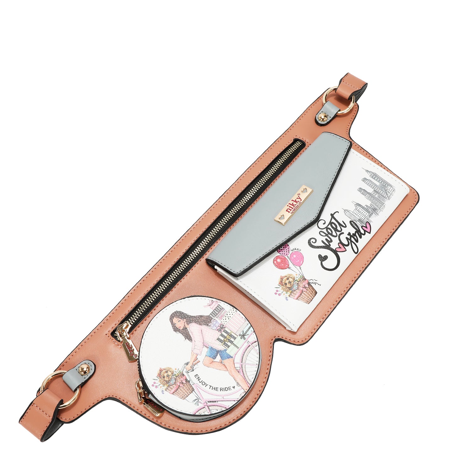 Main zipper closure with Nikky Logo zipper pulls.