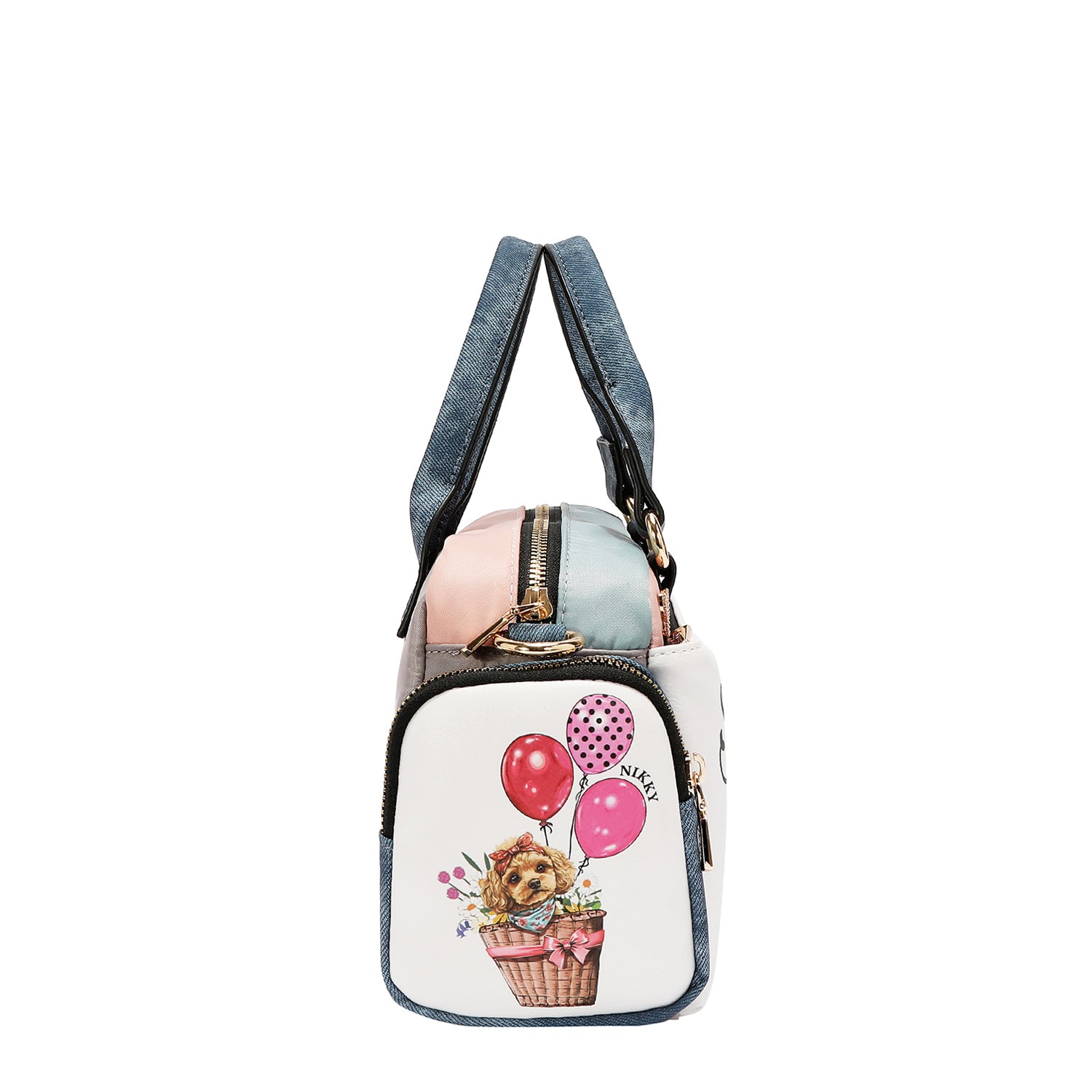Lined with Nikky signature puppy print nylon fabric.